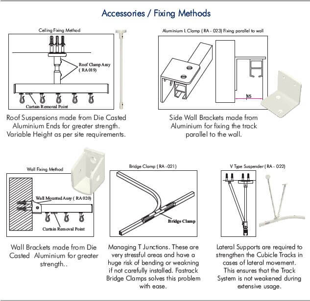 Lightweight aluminium track systems designed for flexible privacy layouts in hospitals, clinics and treatment areas.